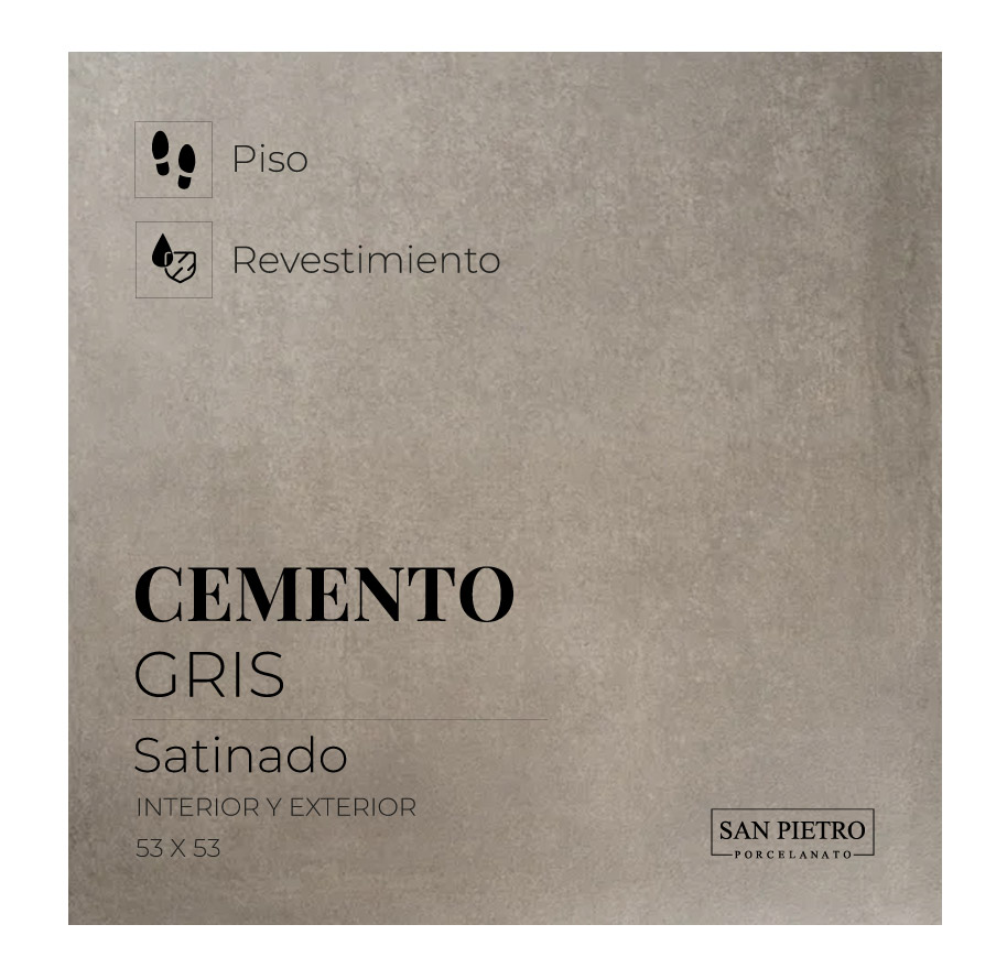 / Porcelanato Cemento Gris Satinado 53 x 53